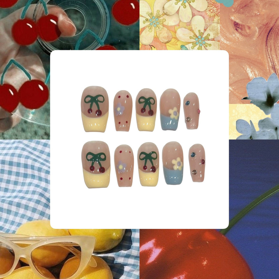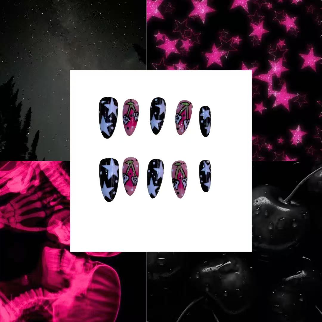 Cherry Tips Acrylic Almond Press On Nail