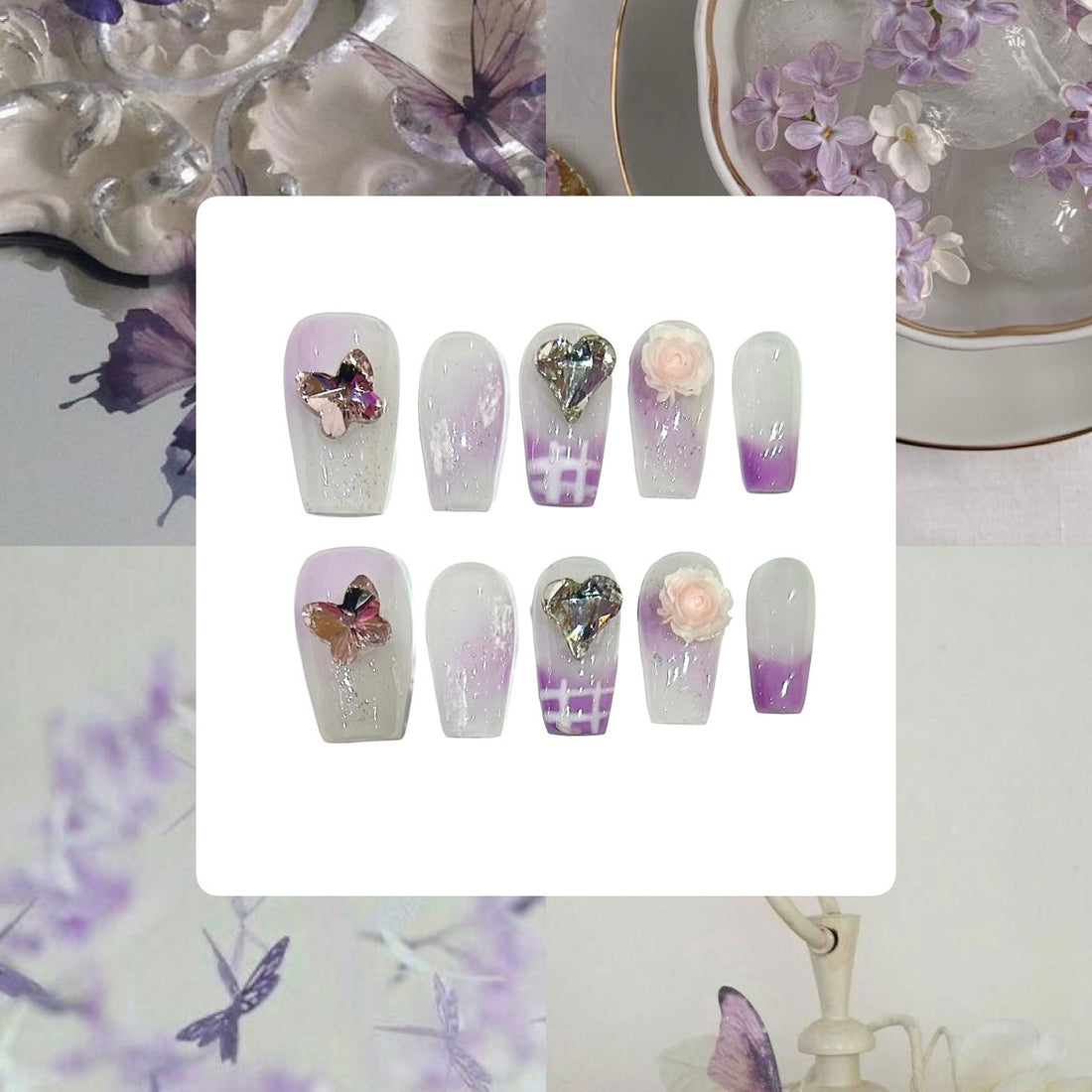 Lavender Garden Acrylic Coffin Press On Nail