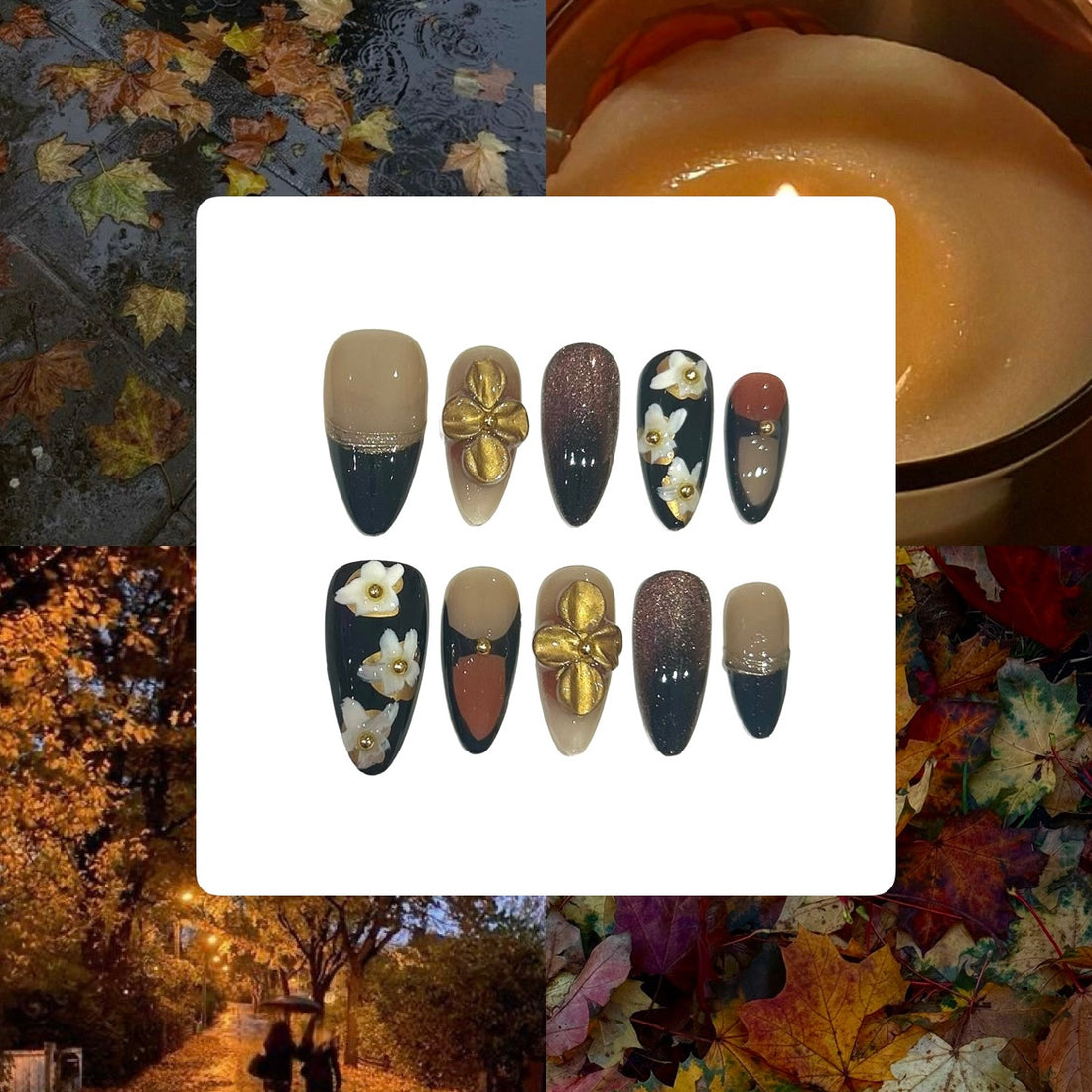 Autumnal Flower Acrylic Almond Press On Nail