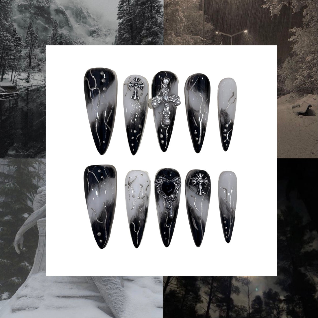 Midnight Avalanche Acrylic Stiletto Press On Nail