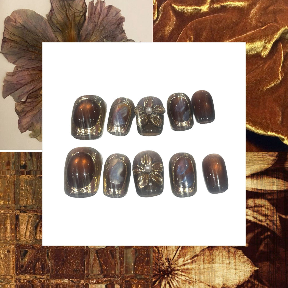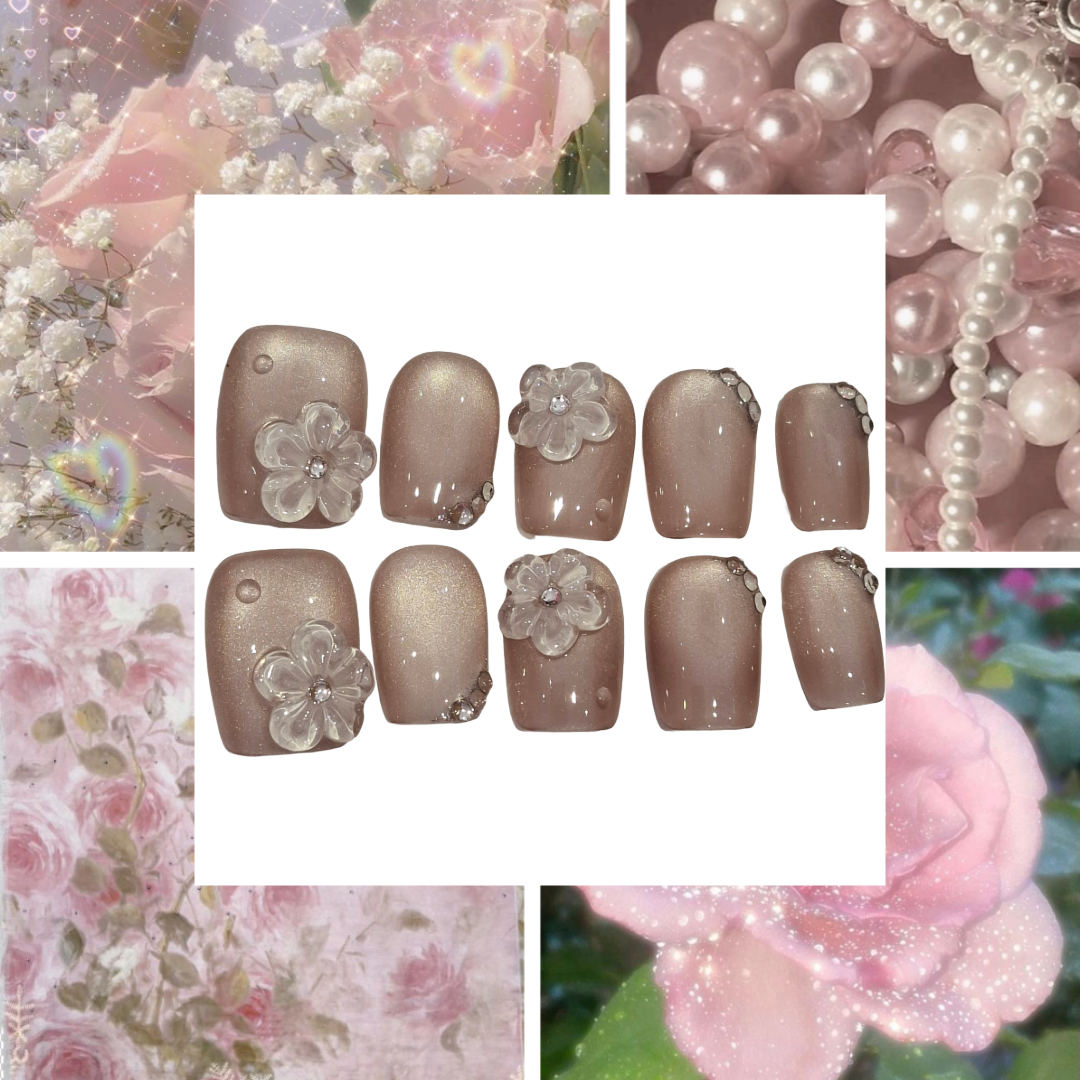 Brown Flower Acrylic Square Press On Nail