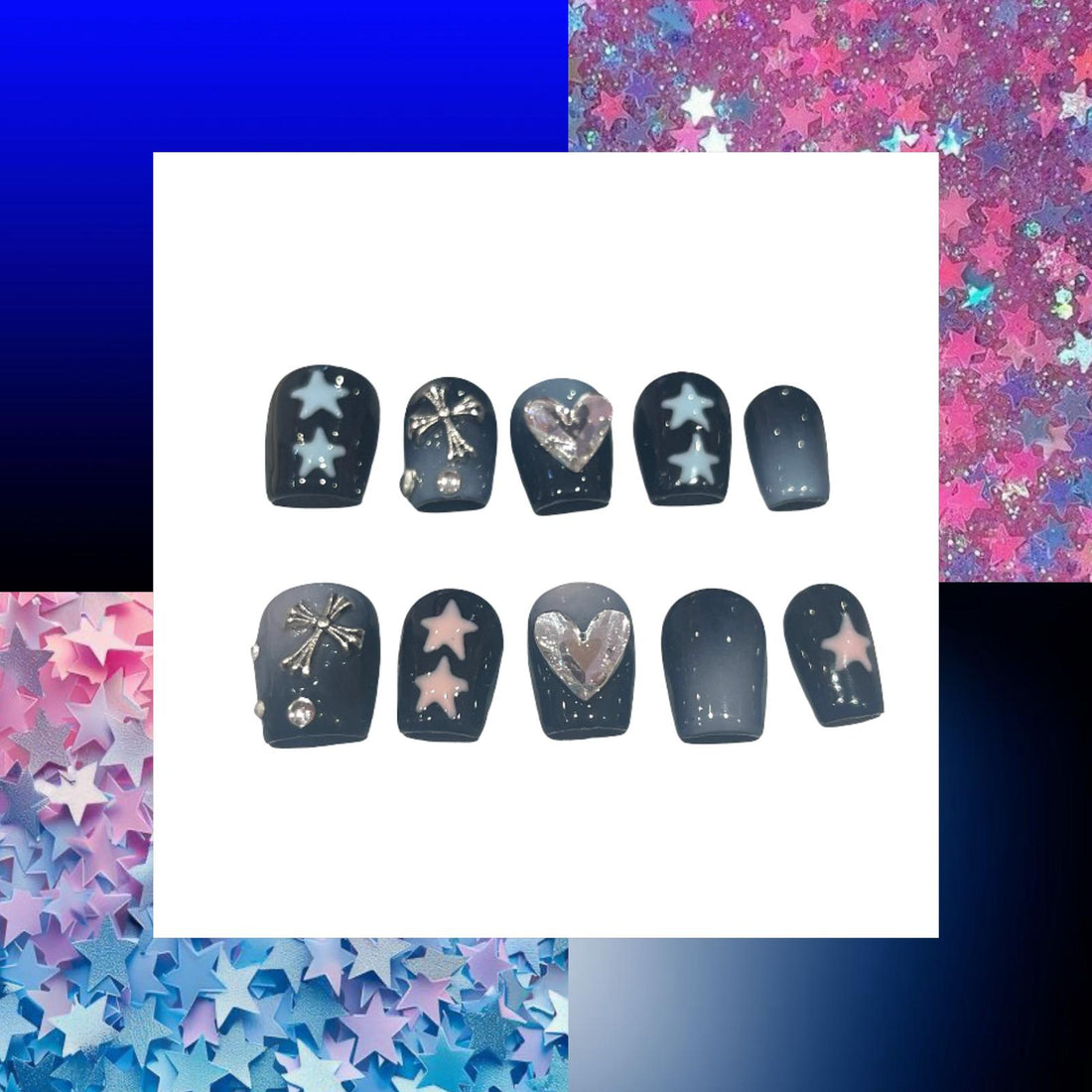 Pastel Stars Acrylic Square Press On Nail