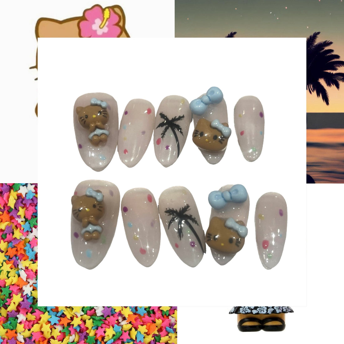 Beach Kitty Acrylic Oval Press On Nail