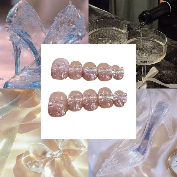 Glass Bow Heels Acrylic Round Press On Nail