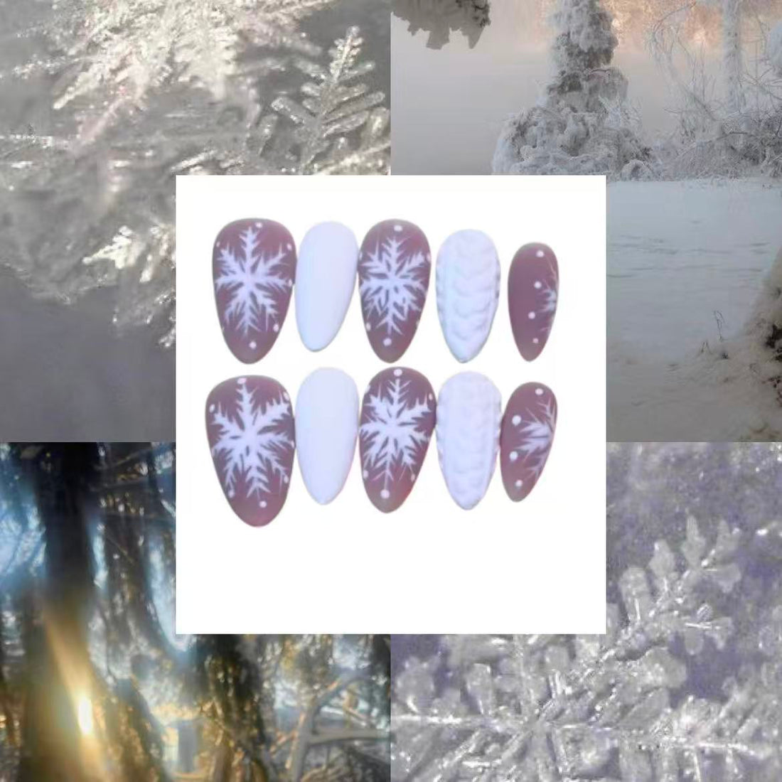 Frosty Snowflake Acrylic Almond Press On Nail