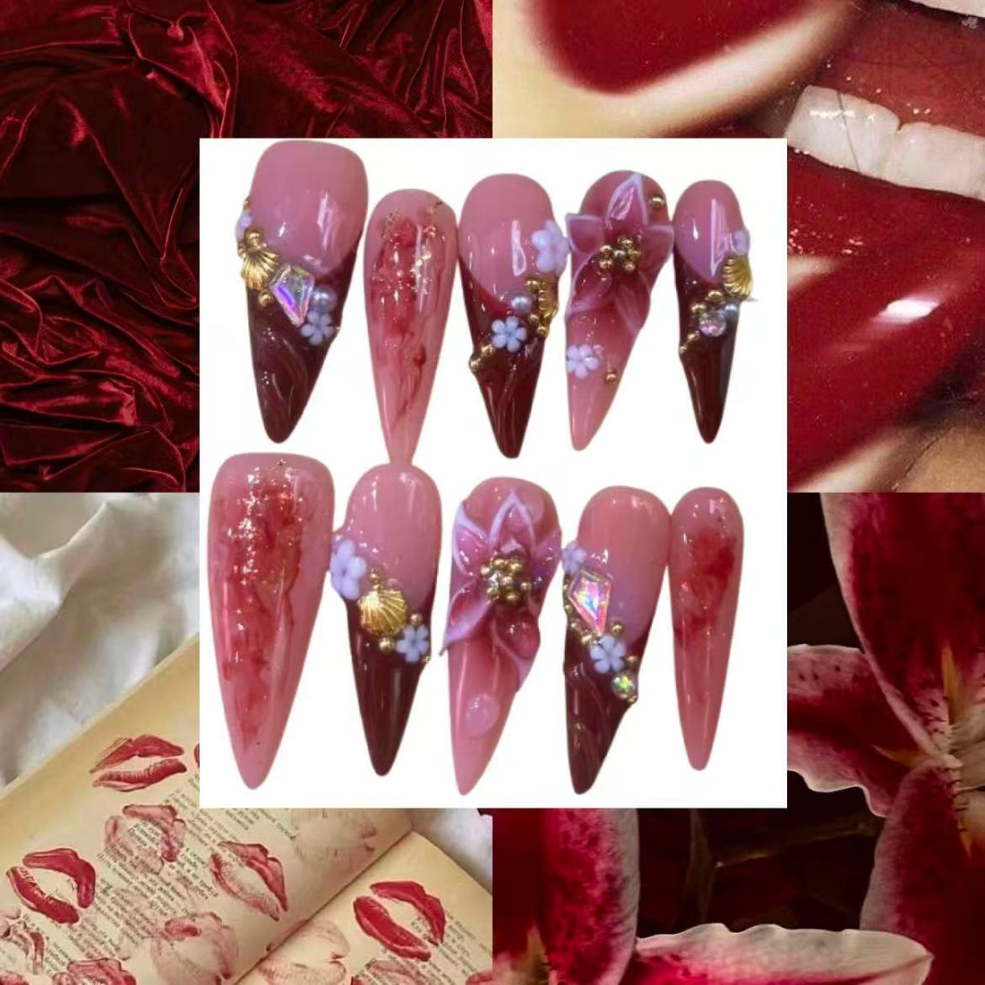 Gothic Cherry Acrylic Almond Press On Nail