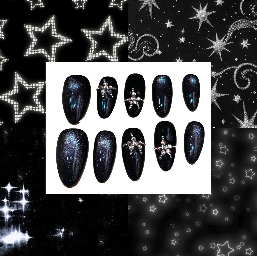 Black Star Bling Acrylic Almond Press On Nail