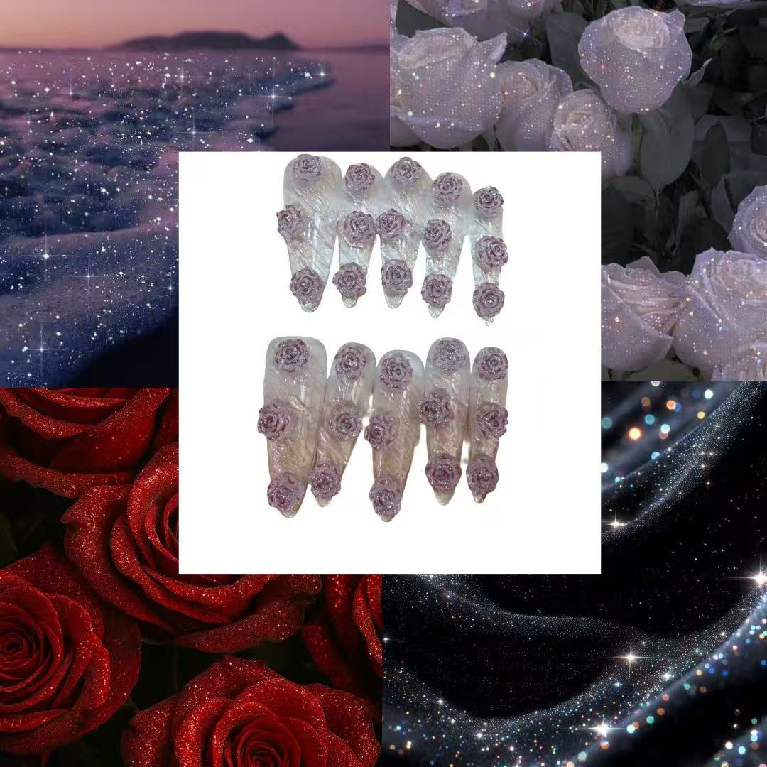 Rose Cascade Acrylic Coffin Press On Nail