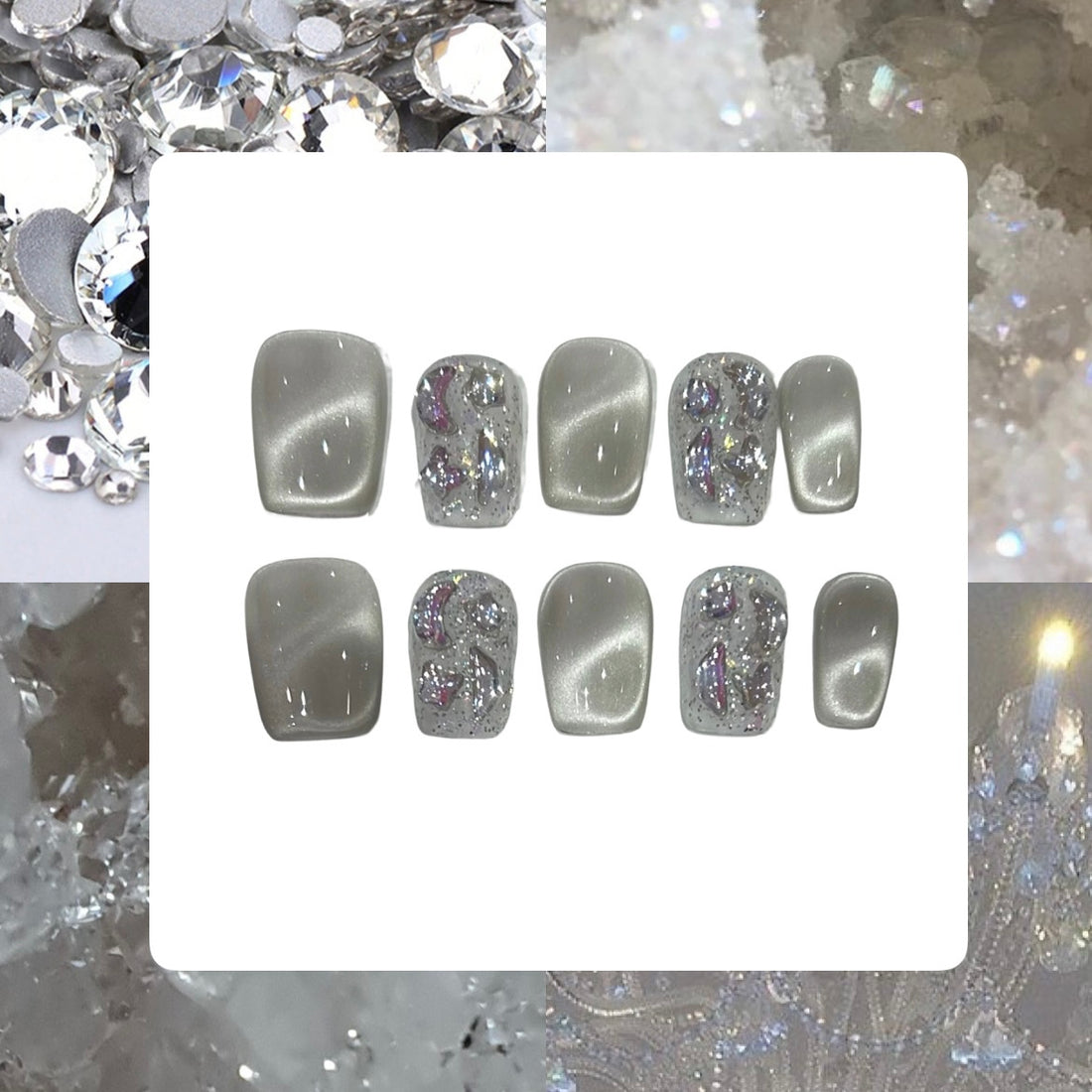 Shimmery Chartreuse Acrylic Square Press On Nail