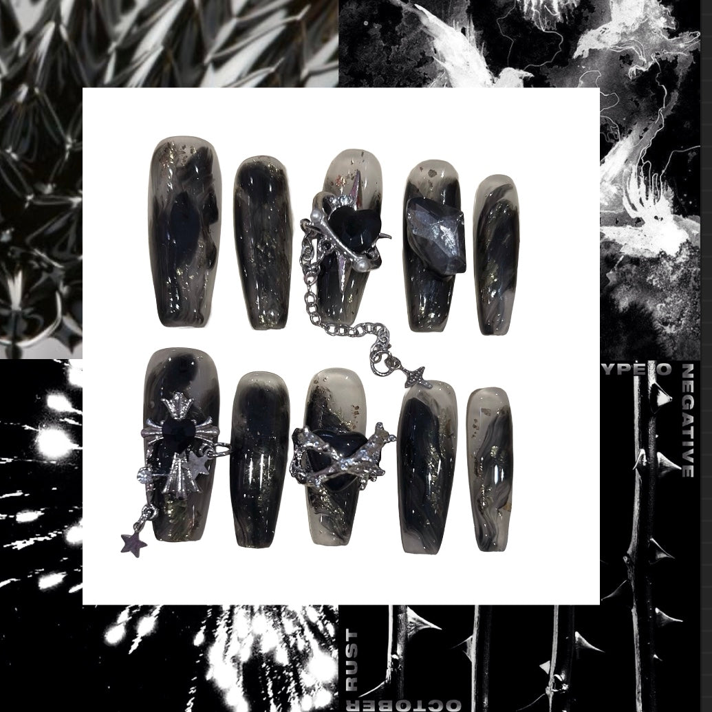 Midnight Avalanche Acrylic Stiletto Press On Nail