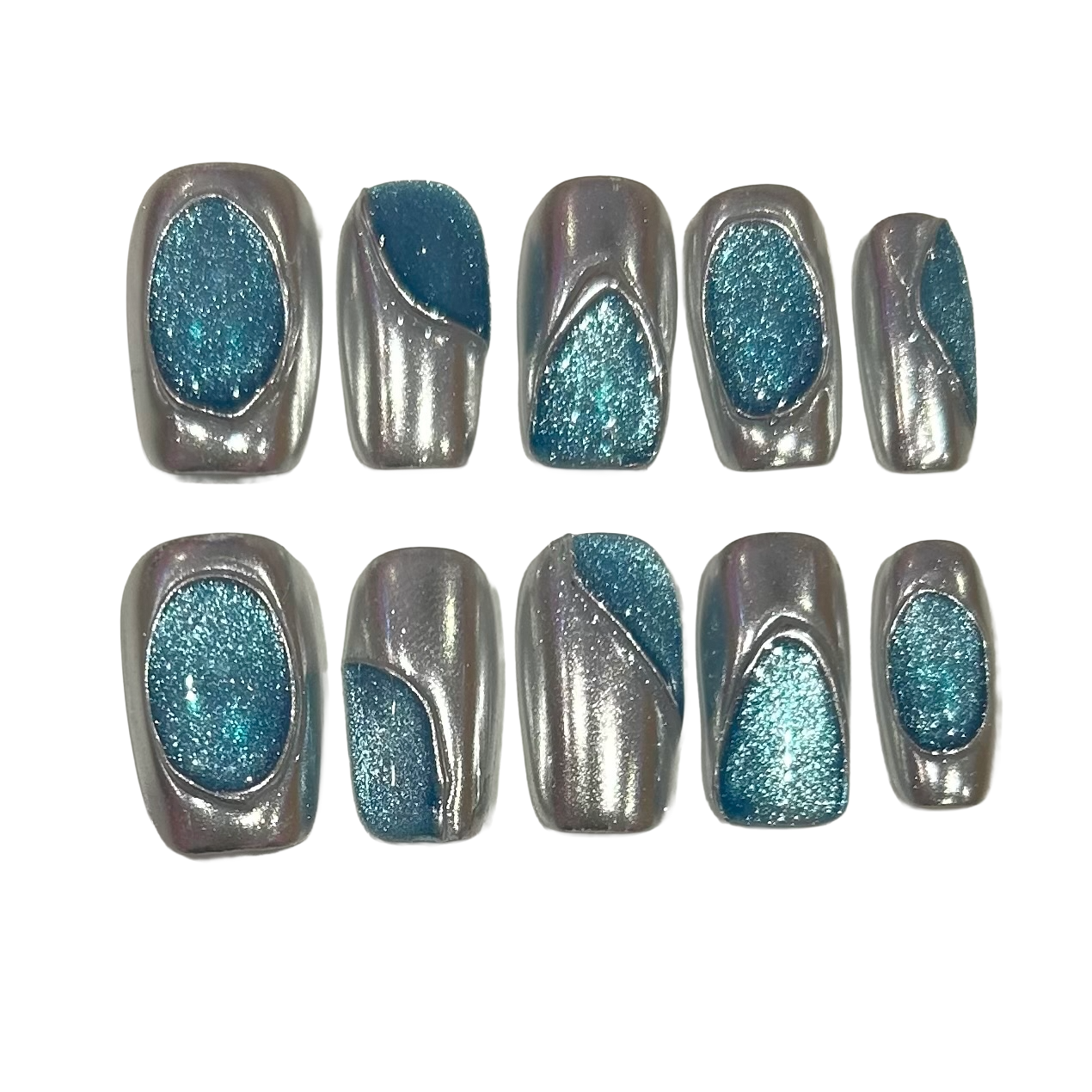 Transform your nails into a work of art with the Cyber Wave Square Press On Nail, mystique, perfect for making a bold statement on any occasion. Designed for easy application and long-lasting wear, these press-on nails are a must-have addition to your beauty routine.