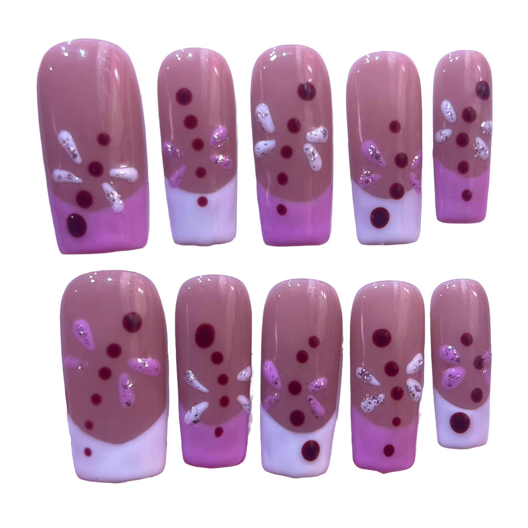 Finish: These nails feature a Glossy finish making them look professionally manicured. The gloss surface catches the light beautifully, enhancing the intricate design.