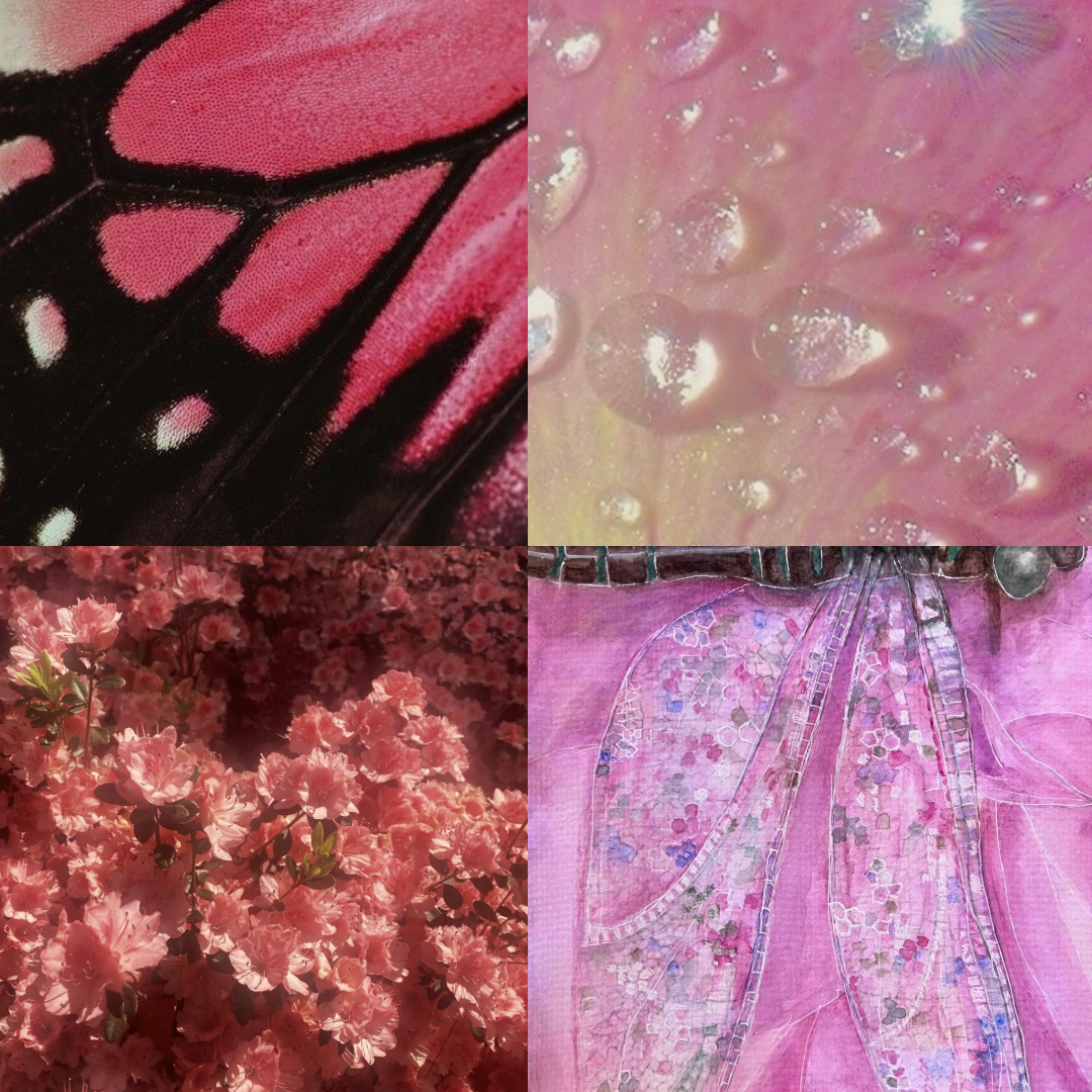 Colour: An nude base with pink and white tips and a dragonfly design.