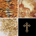 Colour: A Dark nude French tip base and a blend of Animal Print, and golden charms.