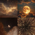 Colour: A white base with golden moons and stars