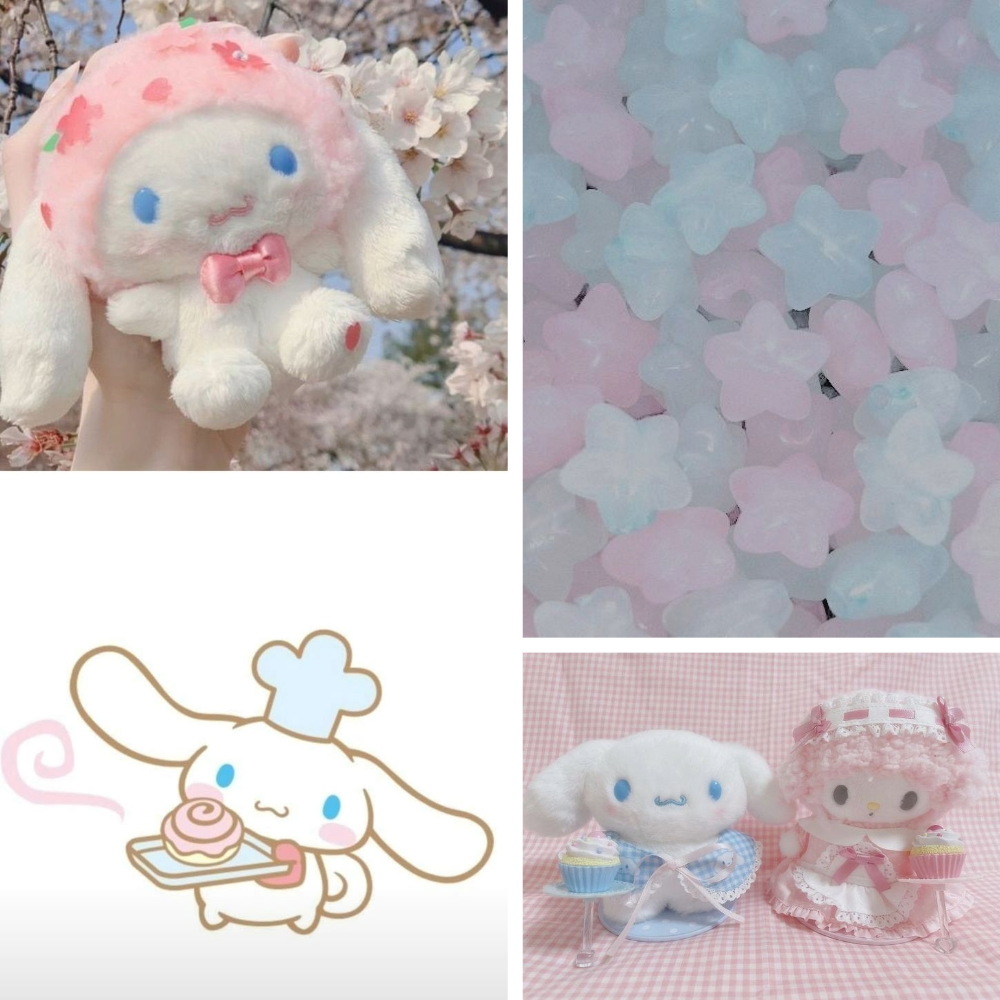 Colour: A pink and blue base with the opposite colours on each hand, along with chunky Sanrio charms, candy charms and bow charms on each finger and 3d heart accents.