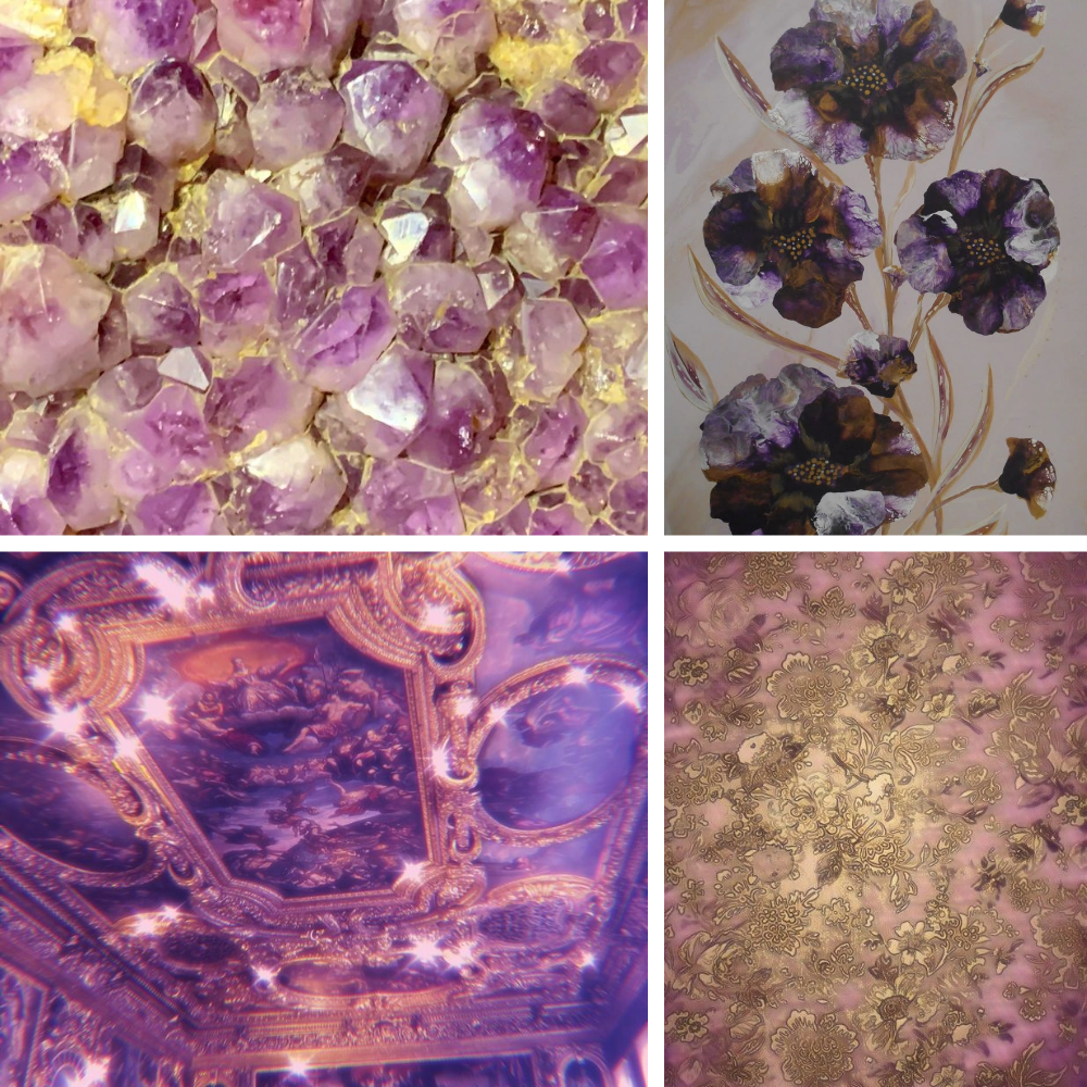 Colour: A super shimmery lilac base with shiny golden accent nails and small gemstones.