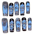 Color: A cool blue and black base, adorned with unique charms and beautiful hand painted accents.
