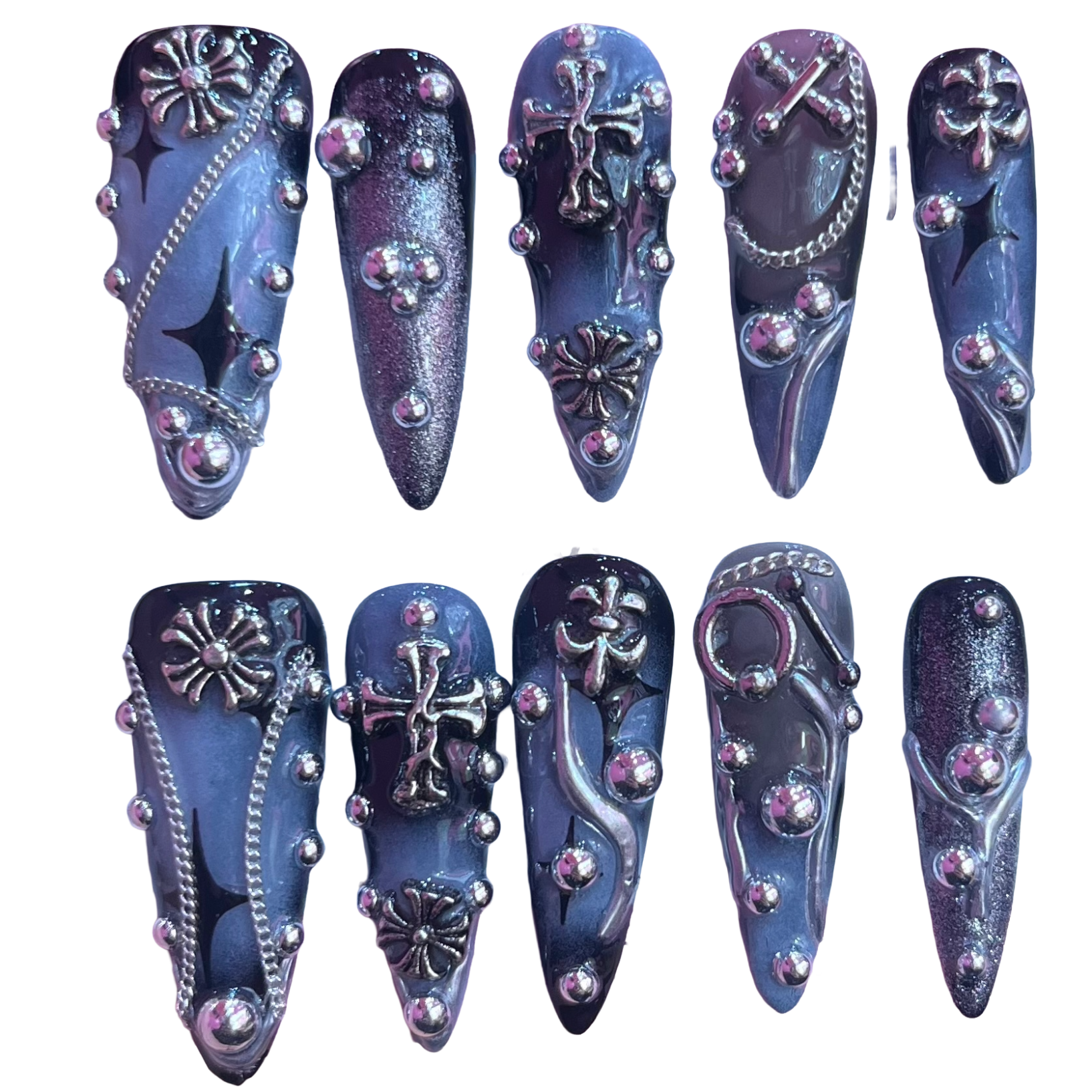 - Your Gothic Blue Acrylic Stiletto Press On Nails are now ready to flaunt! Enjoy your stunning, salon-quality manicure.