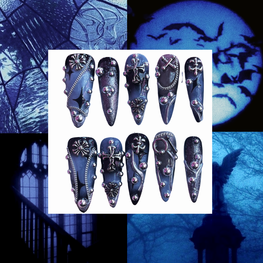 Transform your nails into a work of art with the Gothic Blue Acrylic Stiletto press On Nail, mystique, perfect for making a bold statement on any occasion. Designed for easy application and long-lasting wear, these press-on nails are a must-have addition to your beauty routine.
