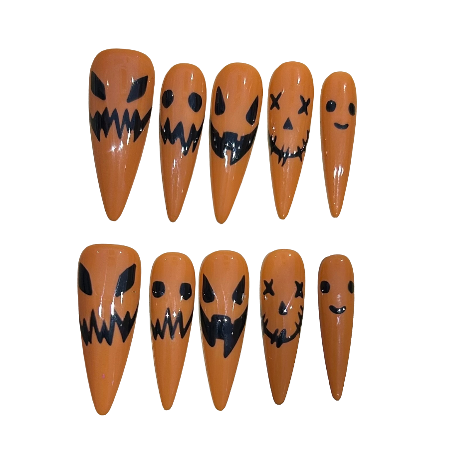 - Your Jack O'lantern Acrylic Stiletto Press On Nail are now ready to flaunt! Enjoy your stunning, salon-quality manicure.