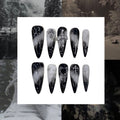 Season: Suitable for all seasons, these nails are designed to complement your look year-round, particularly for the darker seasons. The Midnight Avalanche Acrylic Stiletto Press On Nail will elevate your style.