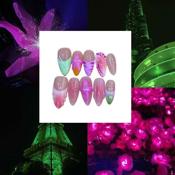Shape:The Neon Petals Acrylic Almond Press On Nail is available in a stylish Almond shape. This trendy and flattering shape elongates your fingers, giving them a chic and modern appearance.