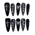Shape:The Noir Papillon Press On Nail are available in a stylish stiletto shape. This trendy and flattering shape elongates your fingers, giving them a chic and modern appearance.