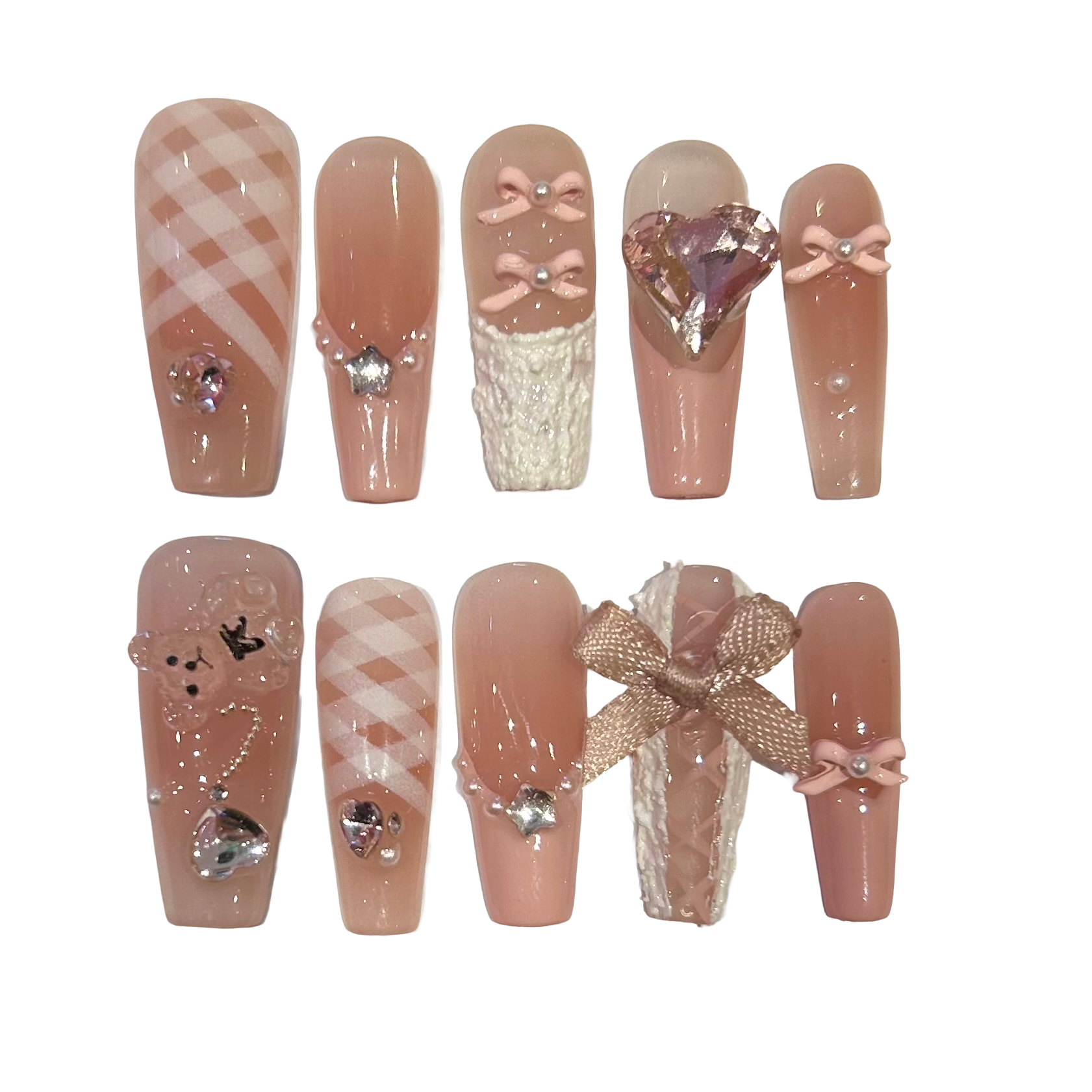 Season: Suitable for all seasons, these nails are designed to complement your look year-round, particularly for summer or on holiday. The Rosy Picnicl Acrylic Coffin Press On Nail will elevate your style.