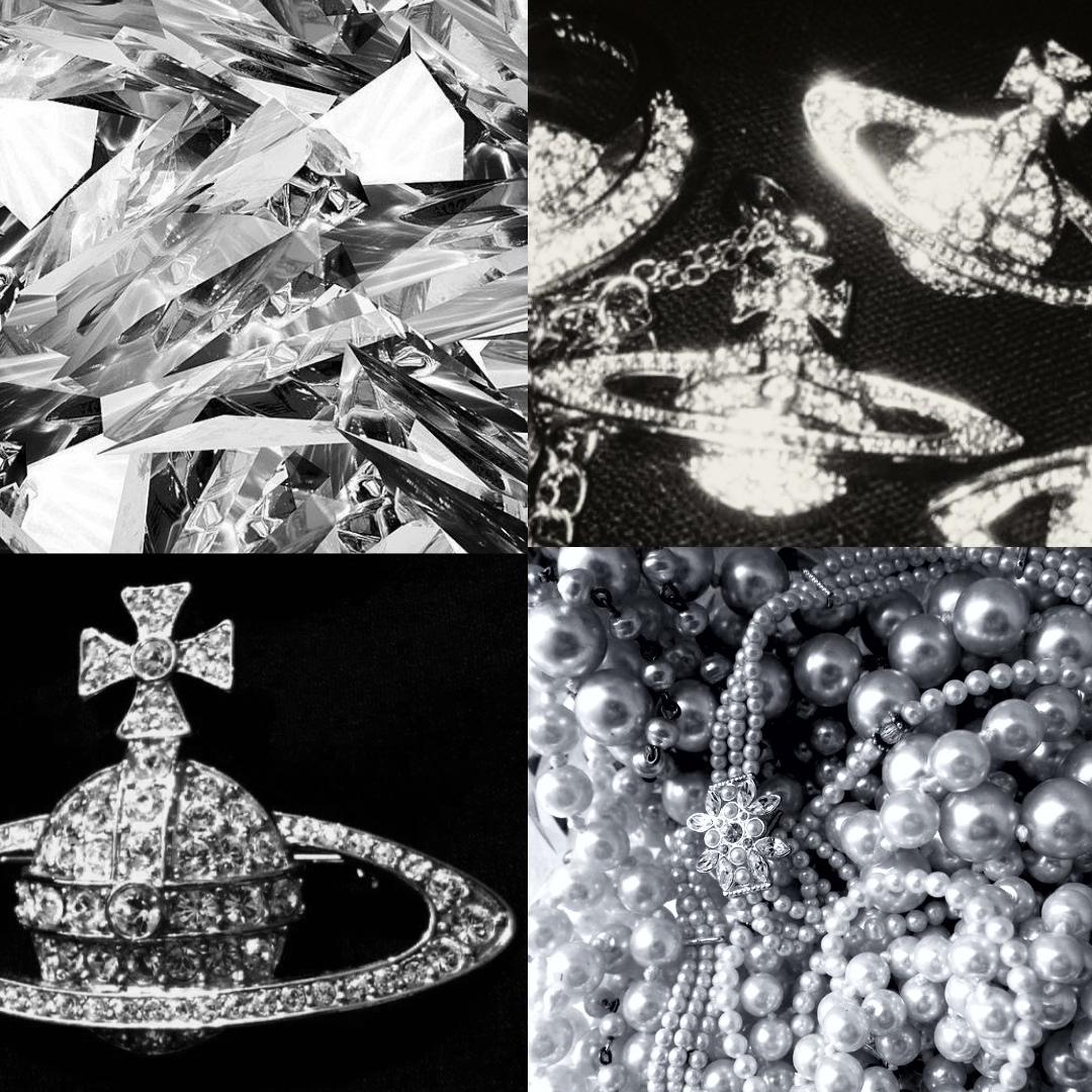 Colour: an silver chrome base with 3D charms and pearls.