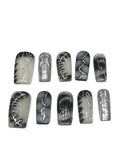 Elevate your nail game with the Silver Swirls Acrylic Square Press On Nail, Perfect for those who appreciate elegance and artistry, these nails are designed to make you feel confident and glamorous, no matter the occasion.