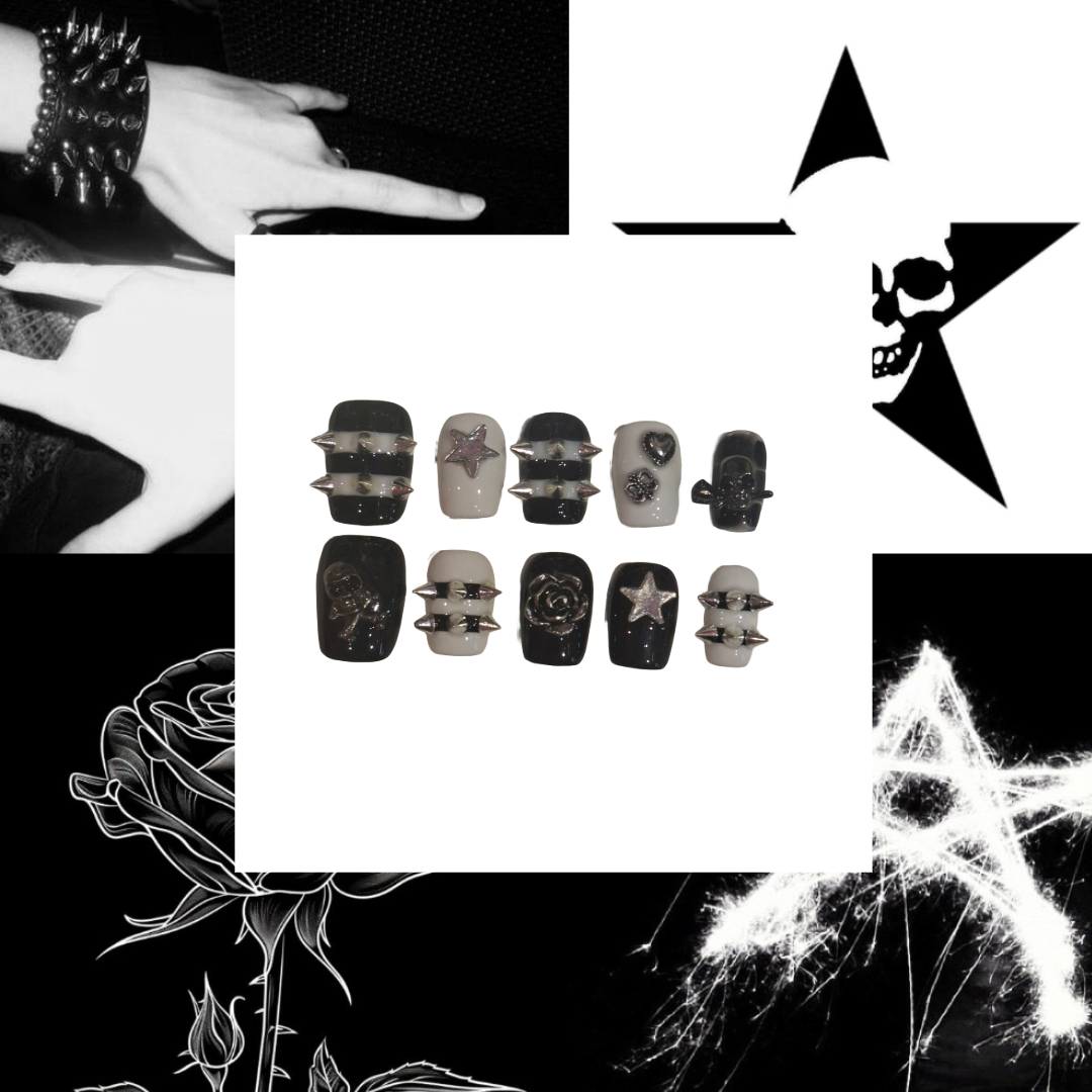 Color: A stunning black and white base, covered in spiked and chunky adornments and dark themed designs.