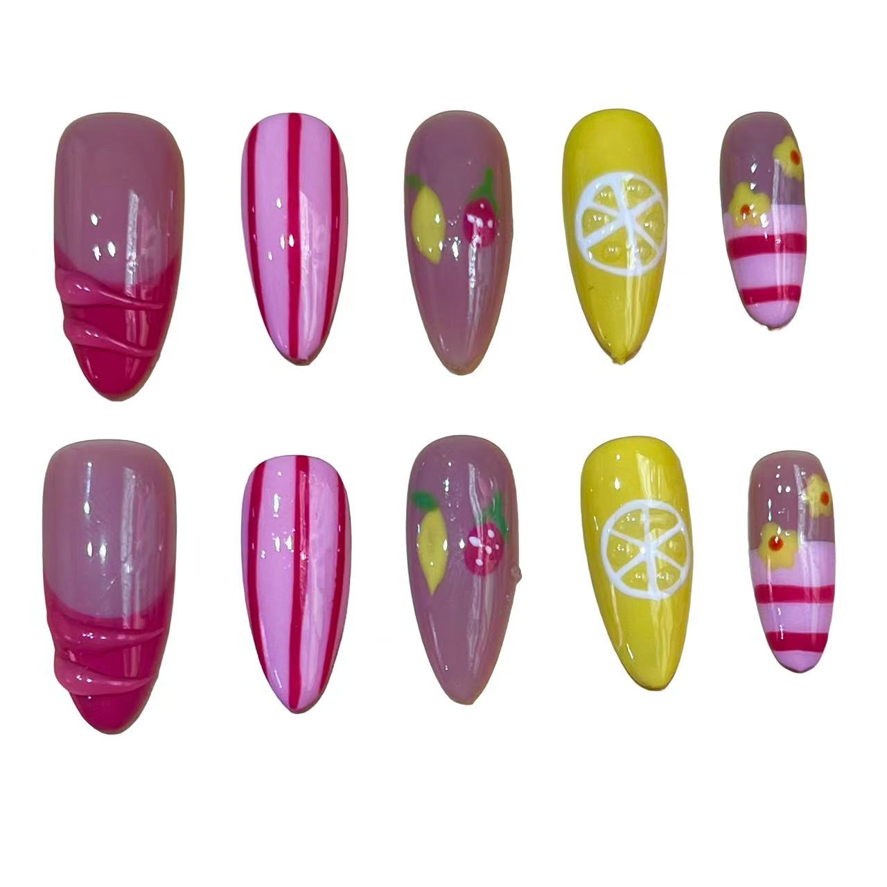 Elevate your nail game with the Summer Picnic Acrylic Stilletto Press On Nail, Perfect for those who appreciate elegance and artistry, these nails are designed to make you feel confident and glamorous, no matter the occasion.