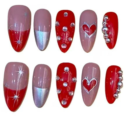 Shape:The Valentines Sparkle Acrylic Almond Press On Nails are available in a stylish long Almond shape. This trendy and flattering shape elongates your fingers, giving them a chic and modern appearance.