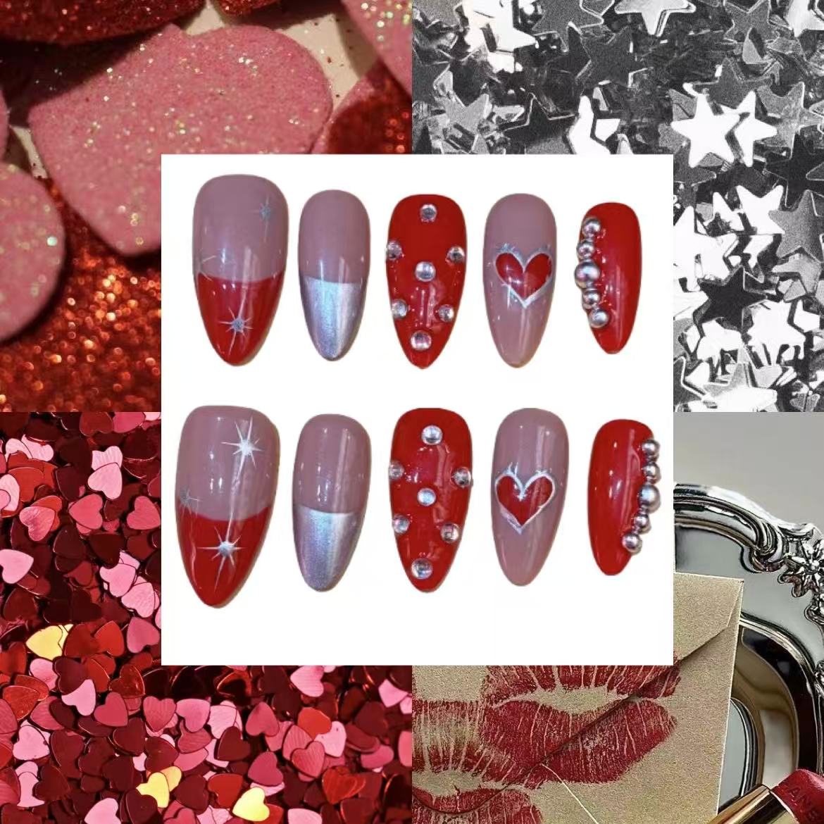 Transform your nails into a work of art with the Valentines Sparkle Acrylic Almond Press On Nail. These exquisite nails combine elegance and a touch of mystique, perfect for making a bold statement on any occasion. Designed for easy application and long-lasting wear, these press-on nails are a must-have addition to your beauty routine.