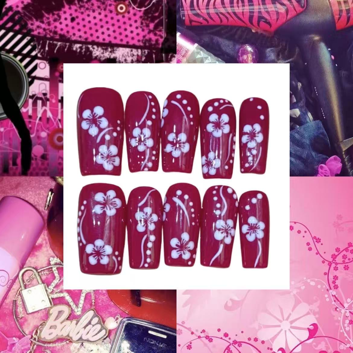 Shape:The Y2K Flowers Acrylic Square Press On Nails are available in a stylish long square shape. This trendy and flattering shape elongates your fingers, giving them a chic and modern appearance.
